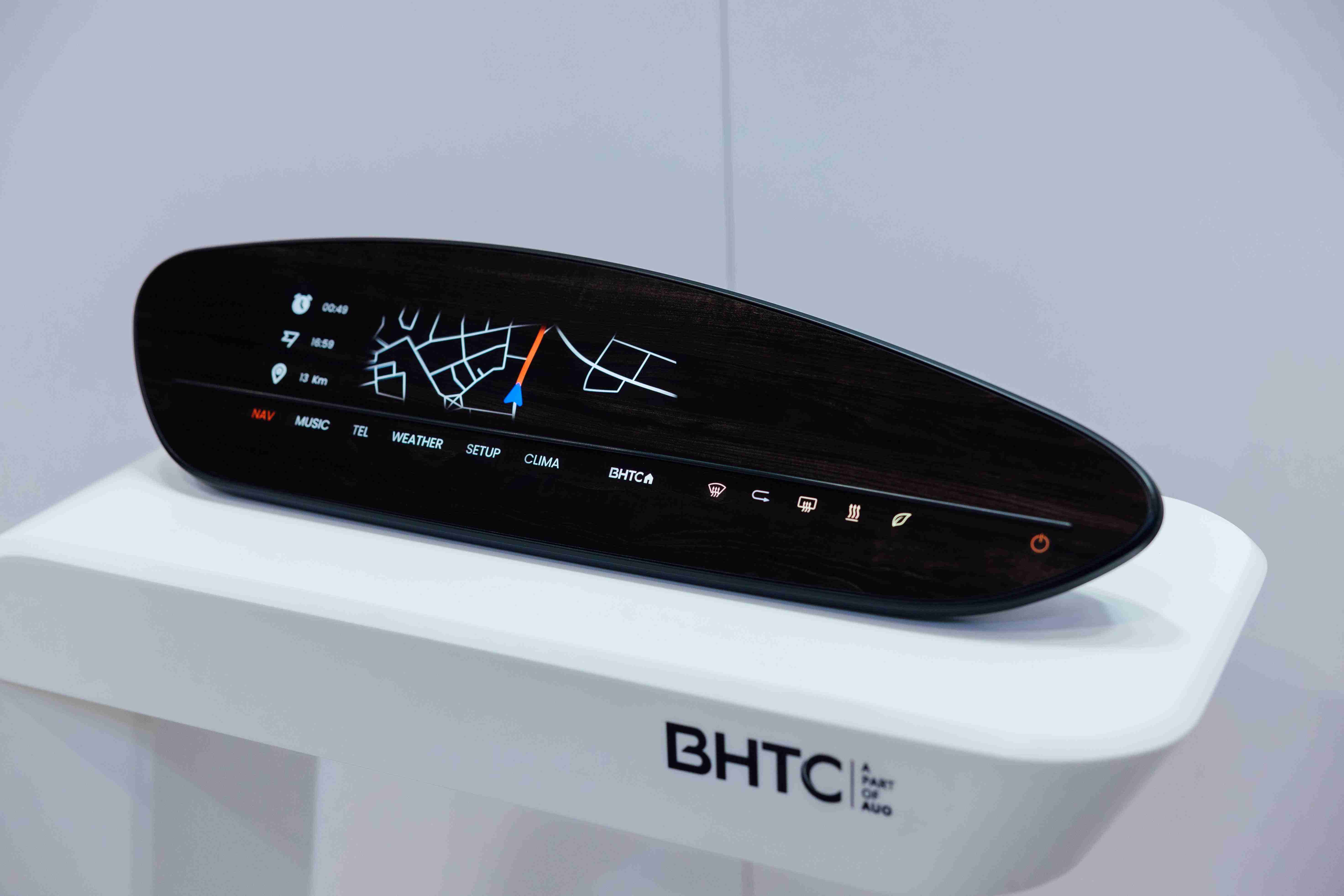 BHTC的木纹车用显示器(Display Behind Wood)将无缝木质表面与显示器结合后,,,可以融入车内设计中,,提供驾驶优质的视觉效果,,,,加上其无边框的设计和亮度调控,,,,创造更优质的车内体验。。。