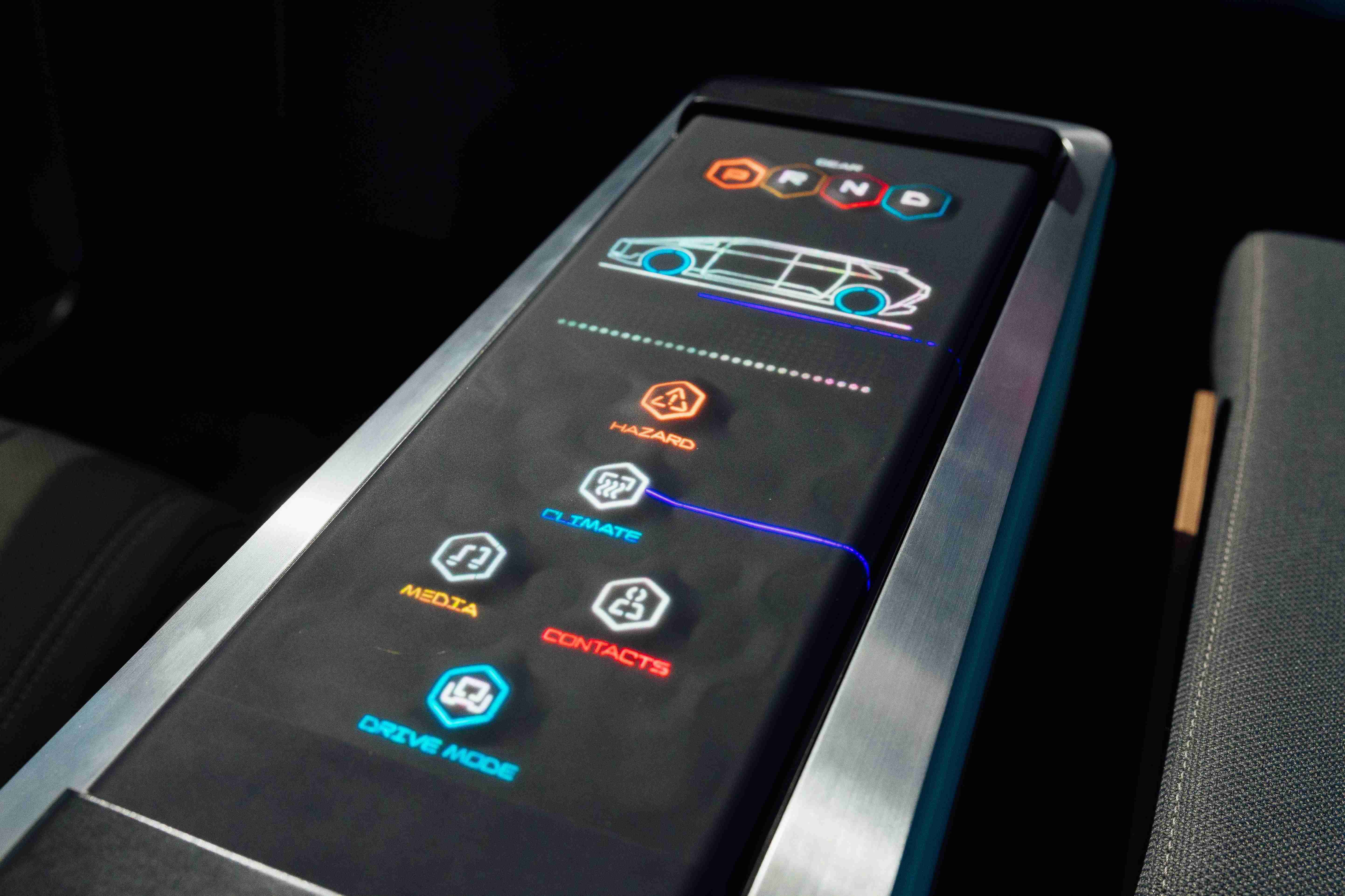 多变形态中控显示(Morphing Center Control)拥有动态变化的表面,,平时常态显示车辆功能,,,,进一步操作时,,,则会隆起成为3D 按钮,,,并在触控时以震动回馈,,,,以精细的操作开创人机互动新境界。。。
