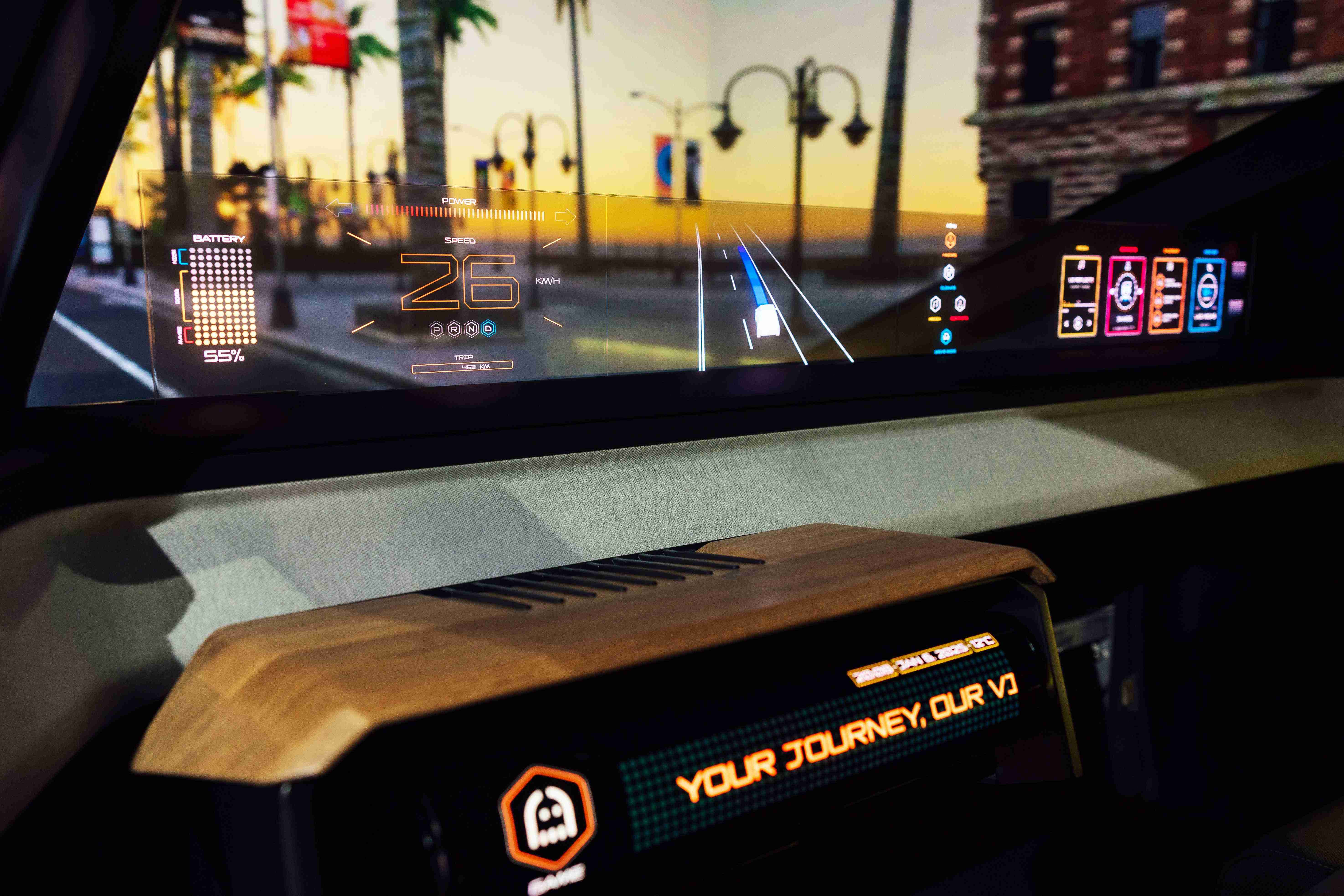 透过XR 互动智慧窗(XR Interactive Window)展现强大的运算能力,,,搭配AI人工智慧自动生成运算,,,未来当车辆行经途中,,,,只需在车窗上圈选对应之车外标的,,,,即可在萤幕中与其互动、、、、获取相关资讯,,,让乘客享有身历其境、、互动式且逼真的体验。。